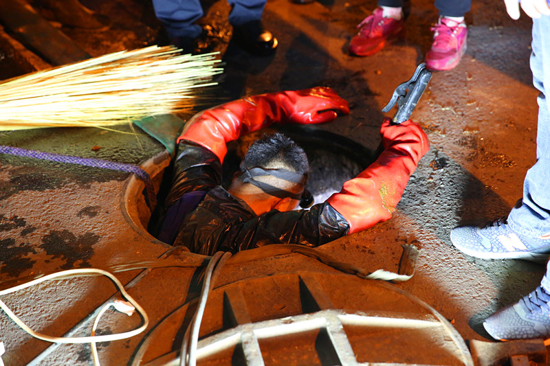 漏點冒出的水溫高達90℃,搶修人員掀起蓋板,用風扇向人井內吹風降溫,隨后冒著被燙傷的危險進入人井中搶修,但由于伸縮器和管道都腐蝕嚴重,狹小的空間無法更換伸縮器。為了保障用戶的溫暖,用最快的速度排除故障,分公司領導決定破路開溝,擴大作業(yè)面,于是及時調來的挖掘機一直挖到凌晨4點才拓展出一個能夠滿足施工要求的空間。